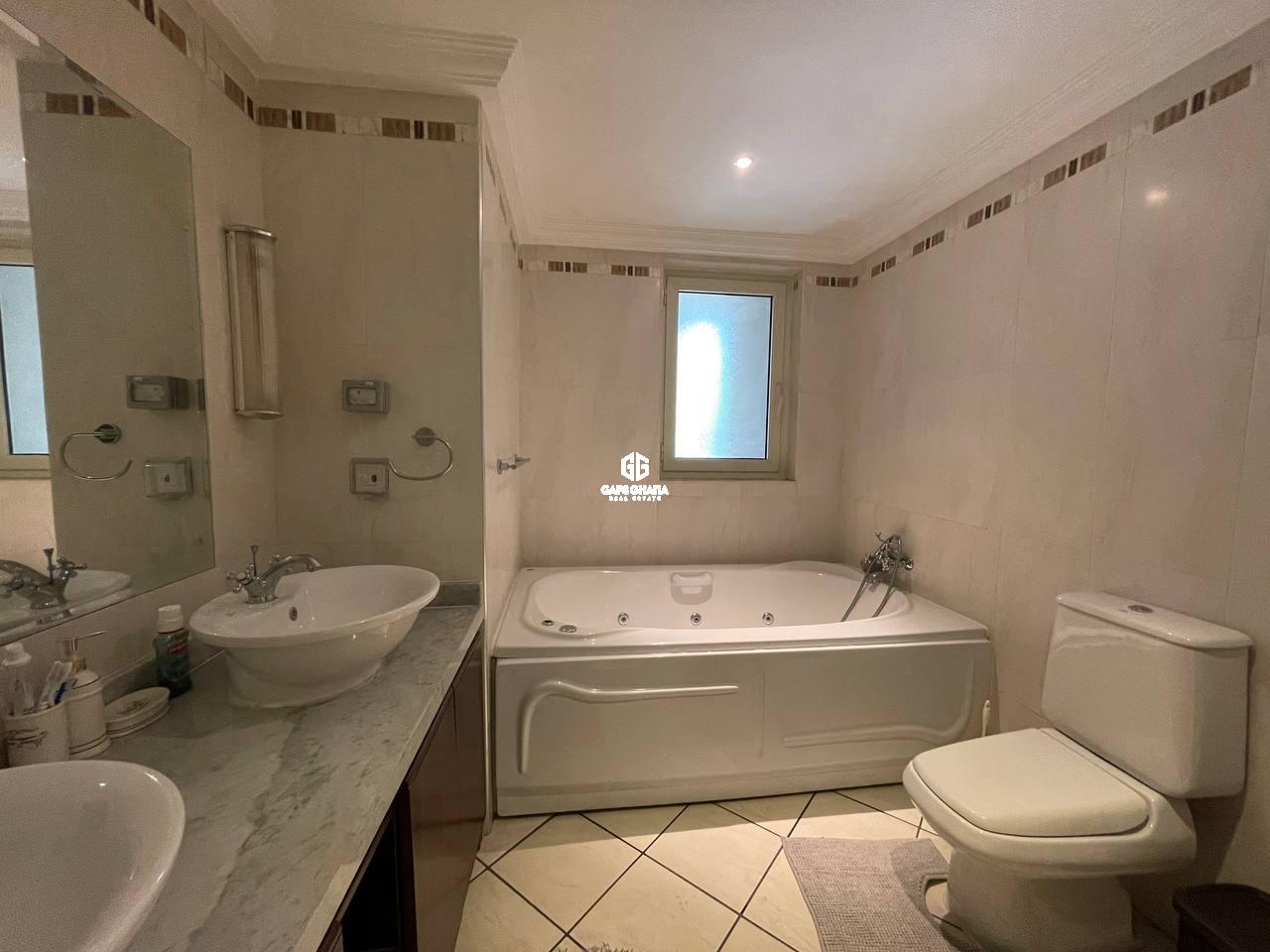 This luxurious three-bedroom fully furnished apartment with staff quarters is renting at an unbeatable price in Villagio.
