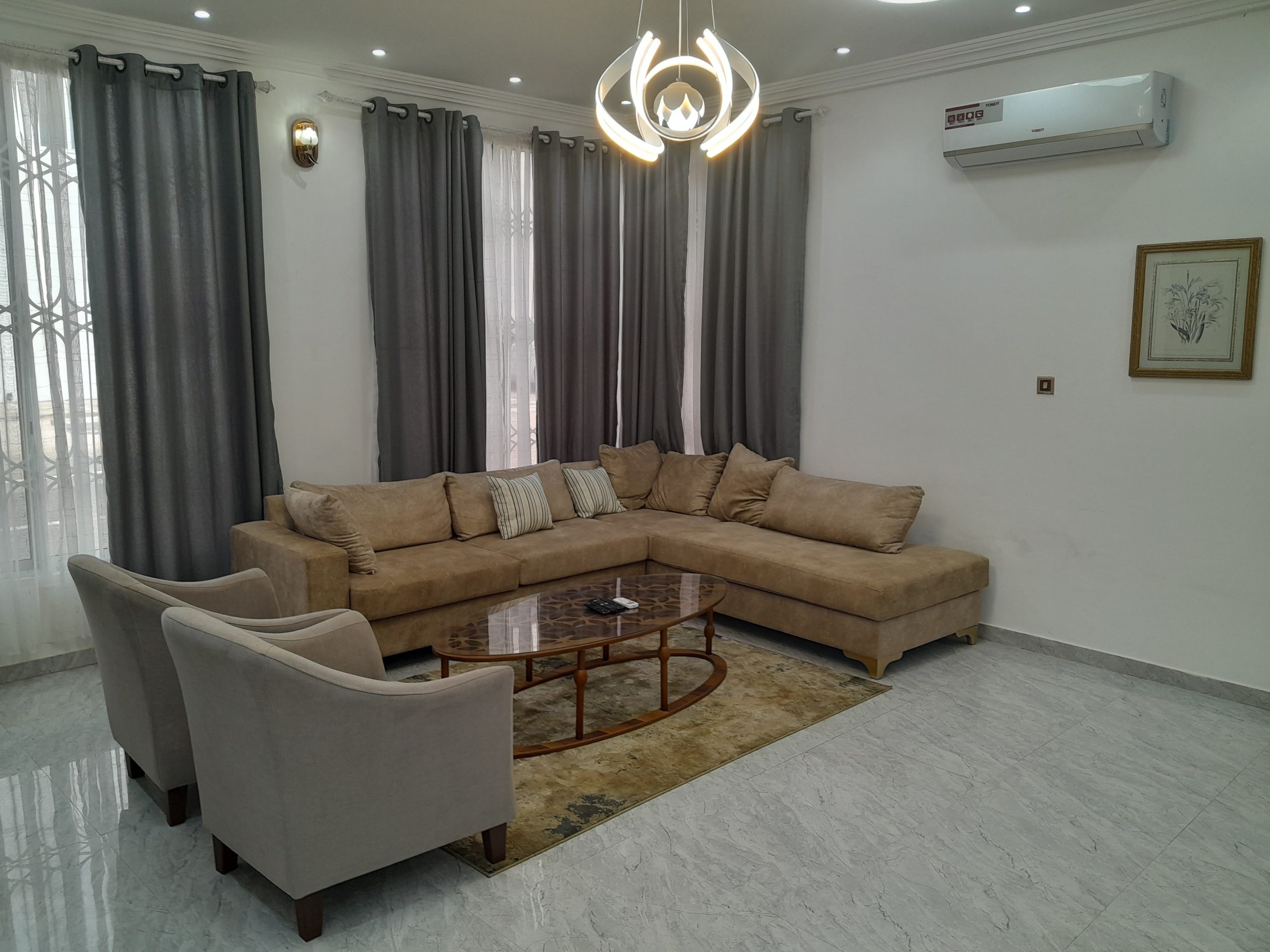 -Furnished -3 bedrooms -Guest washroom -Fully fitted kitchen -Inbuilt wardrobe -Free Internet connection -Free DSTV -2 car parking space -24/7 security