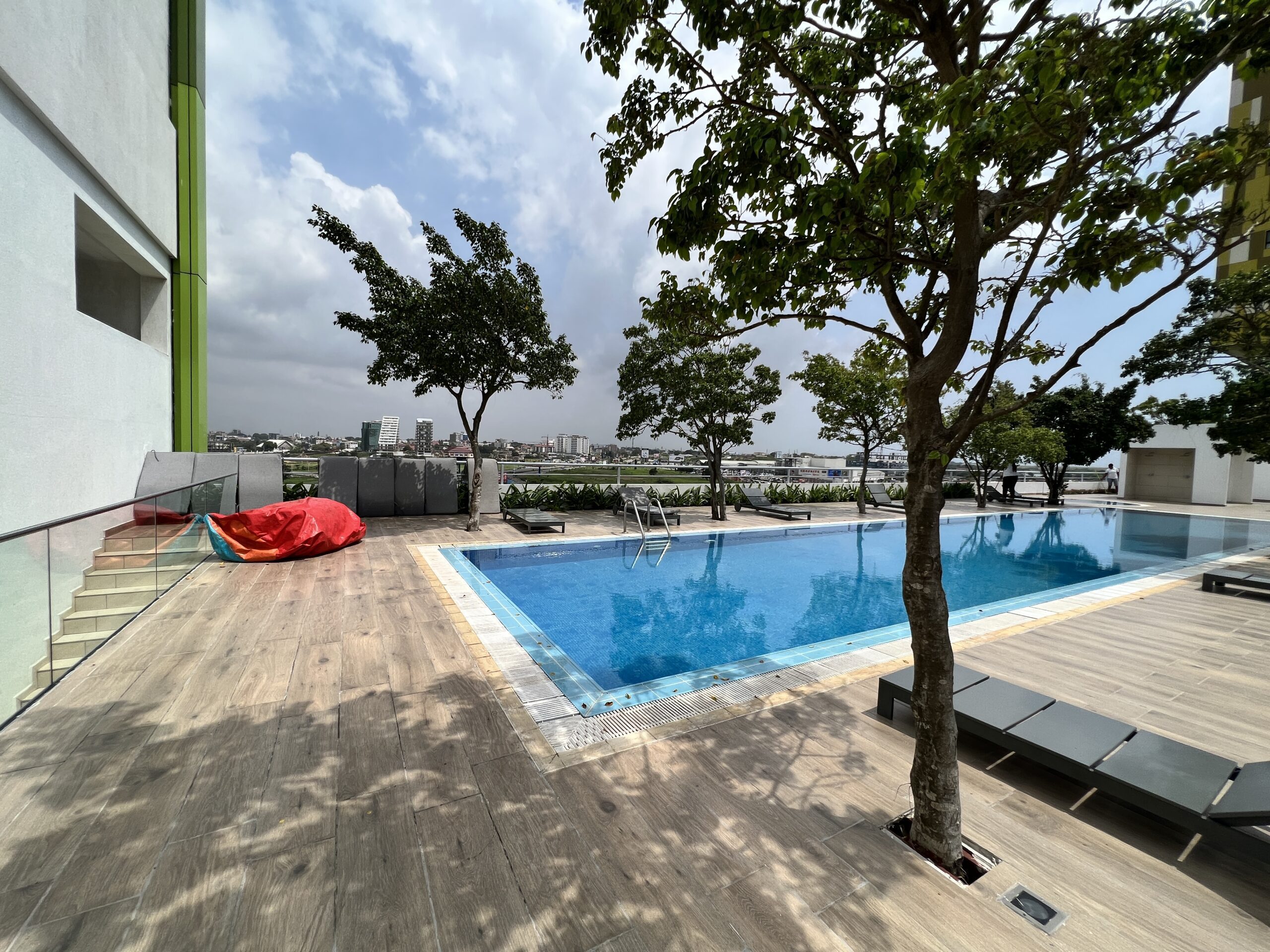 For the perfect comfort and relaxation, the apartment complex offers 24-hour security, a large rooftop communal pool and terrace, a gym, restaurants, cafes, and a bar.